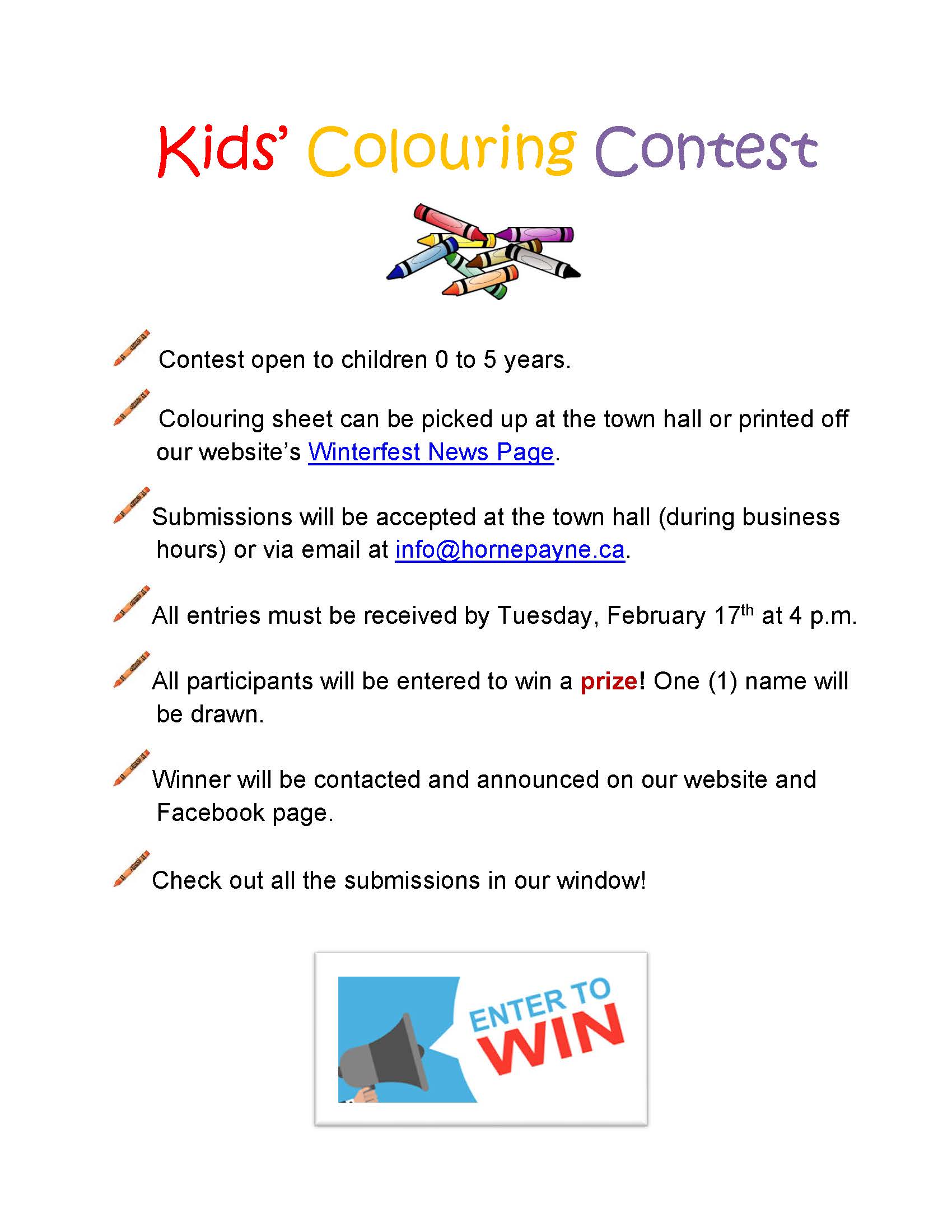 *Kids’ Colouring Contest, submissions by February 17th @ 4 p.m. - Colouring Contest sheet