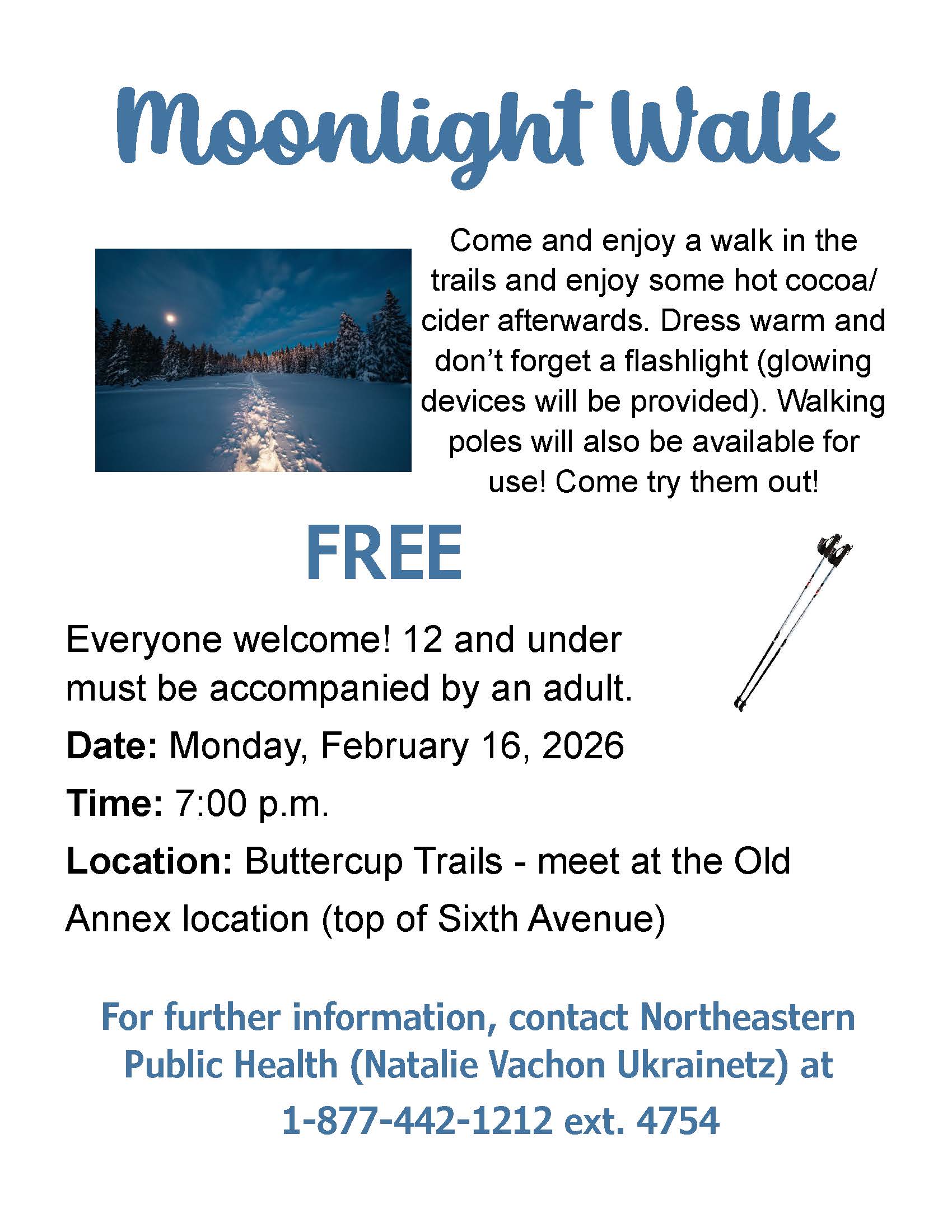 Moonlight Walk, 7 p.m., Buttercup Trails (old Annex)