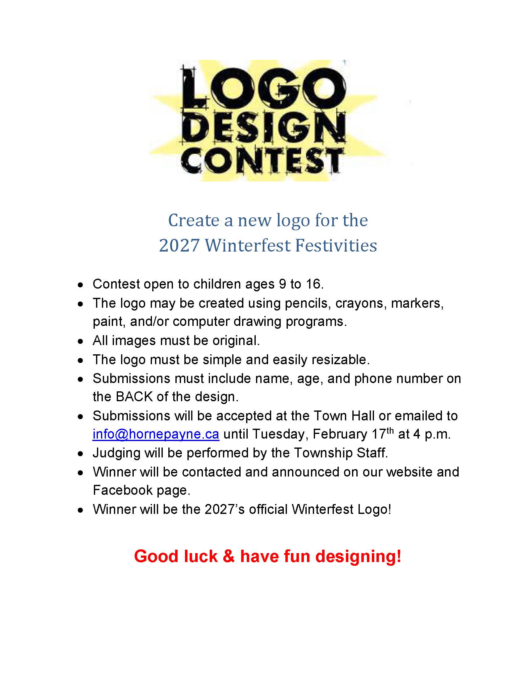 *Winterfest Logo Design Contest, submissions by February 17th @ 4 p.m.