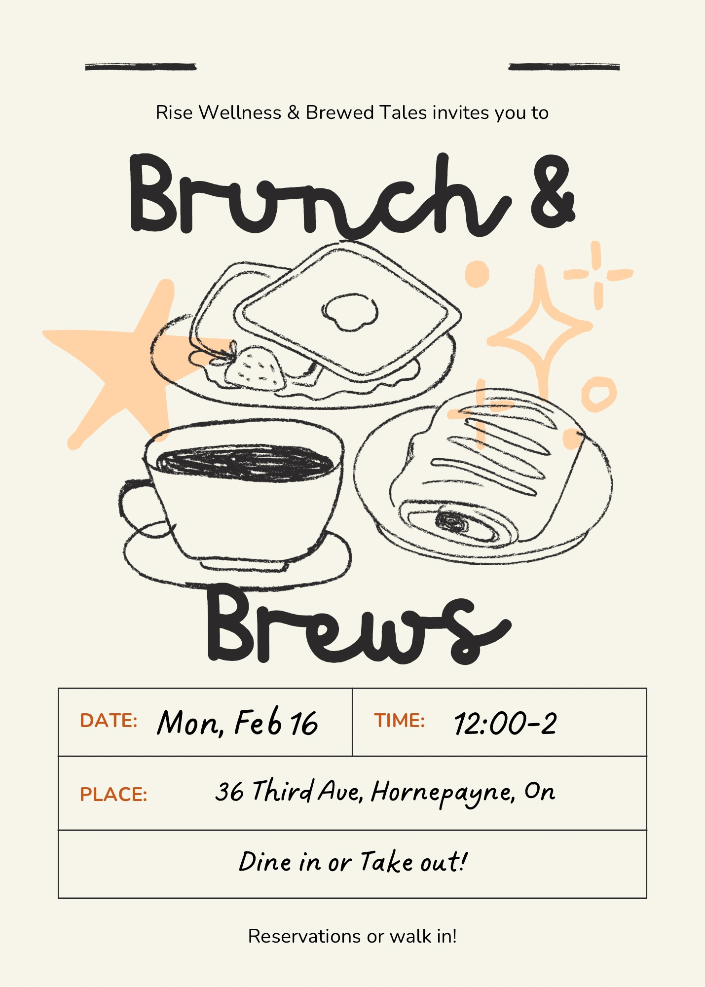 Brunch & Brews, 12 – 2 p.m., Rise Wellness Centre